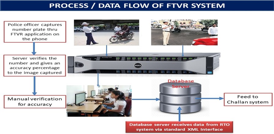 Traffic police to capture various violations happening at the field, the data that is captured by handheld mobile TABs are uploaded to the central server in real-time over 4G/3G connectivity.